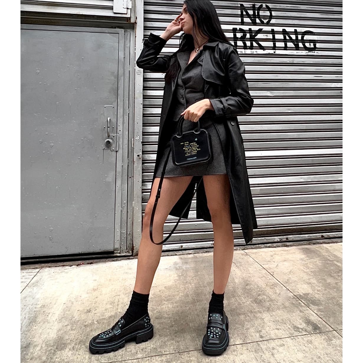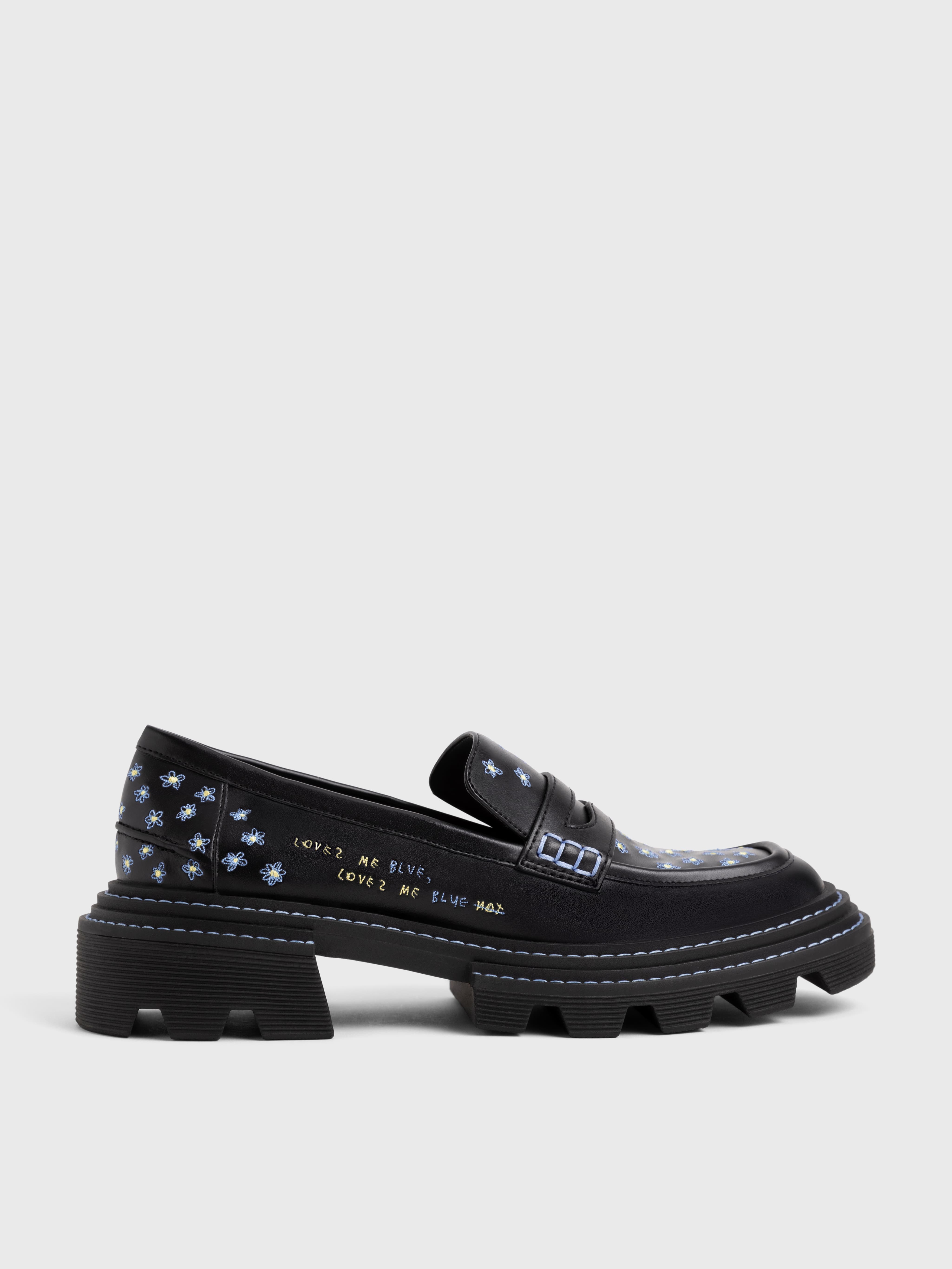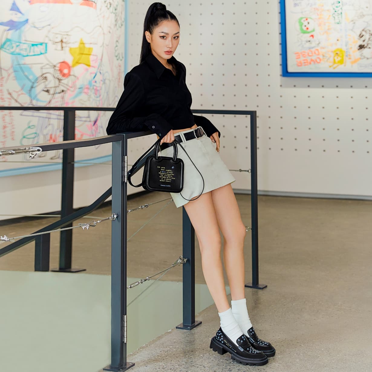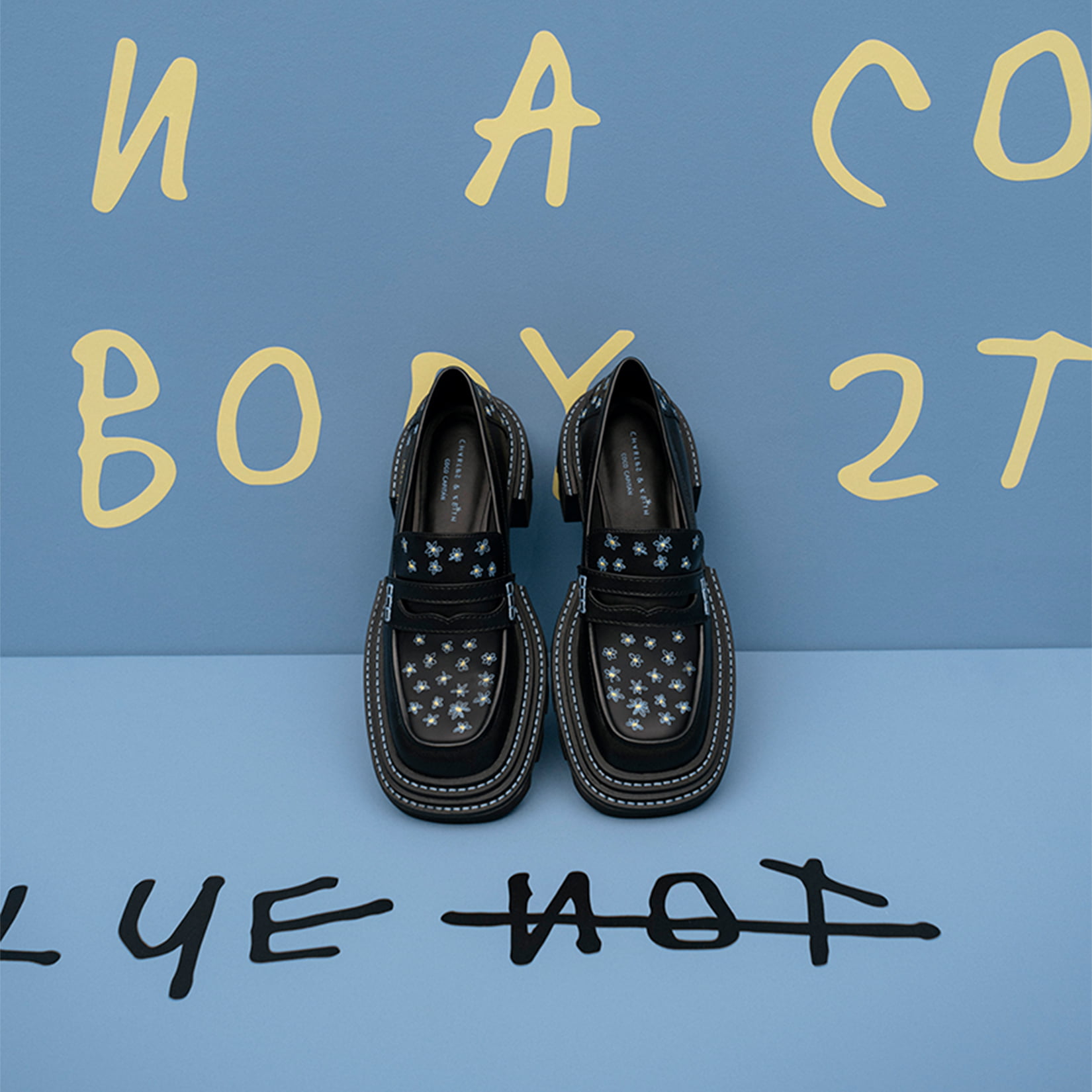 SHOP THE COLLECTIONArtist and CHARLES & KEITH global brand ambassador @vousmevoyez brightens up her edgy all-black summer outfit with the Perline embroidered chunky penny loafers and sculptural tote bag from our #CocoCapitanxCharlesKeith collection.