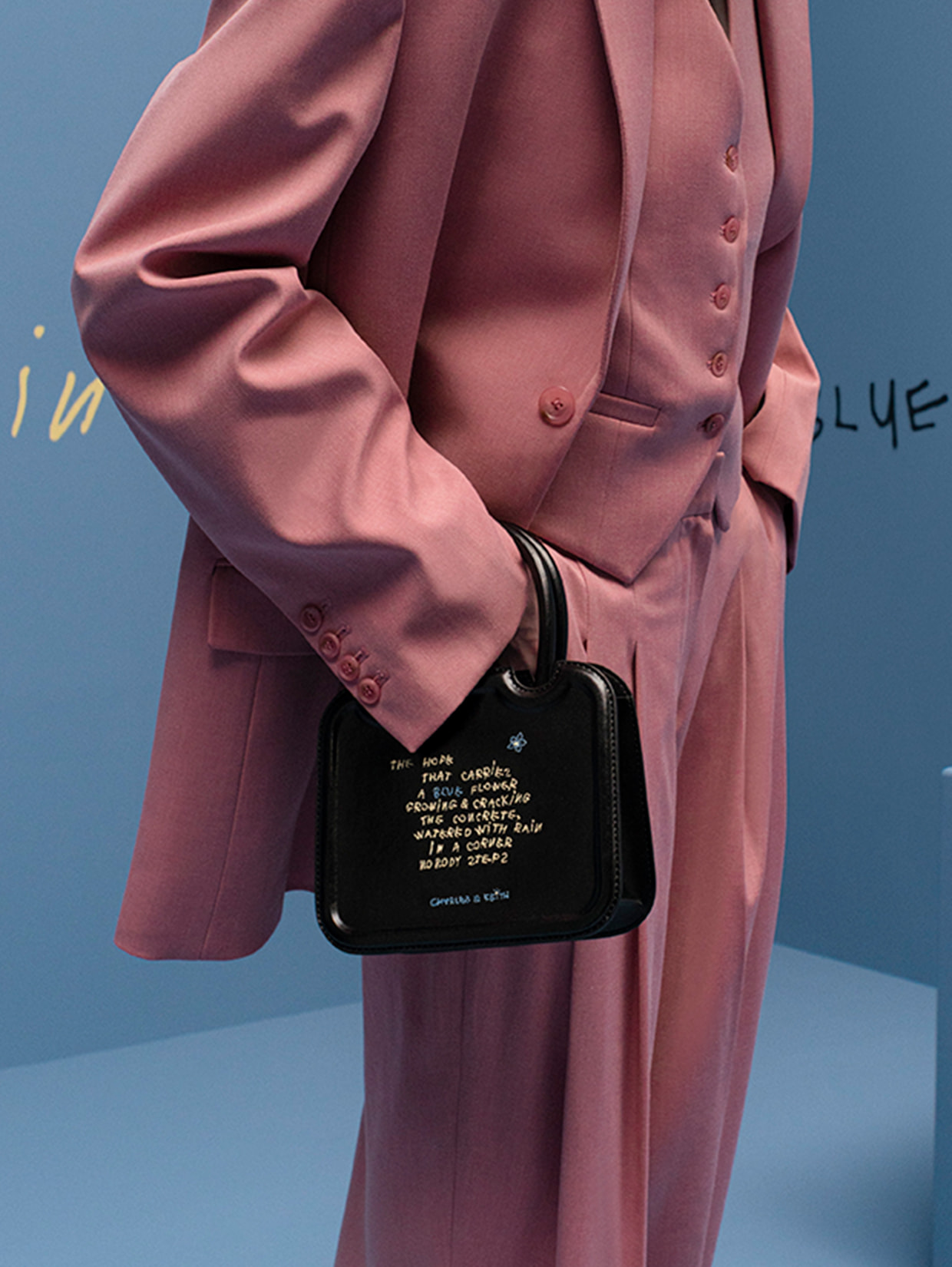 Featuring androgynous and structured silhouettes, the Perline Chunky Penny Loafers and Perline Double Handle Sculptural Tote Bag serve as canvases for Coco Capitán’s art, while reflecting the sensibilities and understated elegance of CHARLES & KEITH’s design aesthetic. These pieces, paired with the artist’s poignant prose, are perfect collector’s items for art lovers and the fashion-forward crowd.